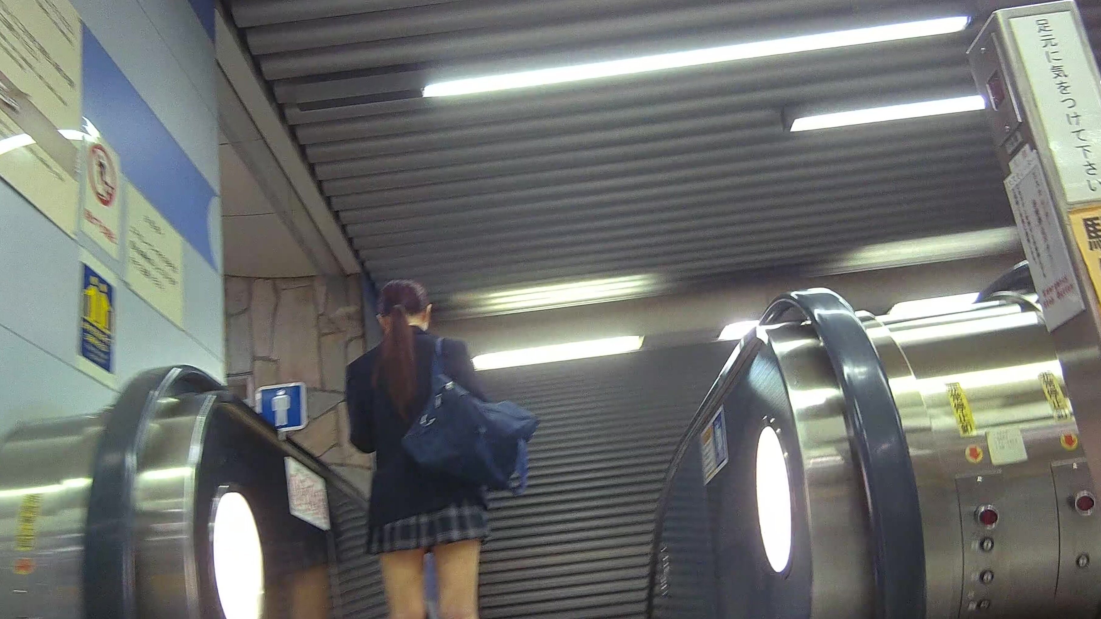 (熱褲CD)格子衫白色熱褲美眉在地鐵上被抄底内内